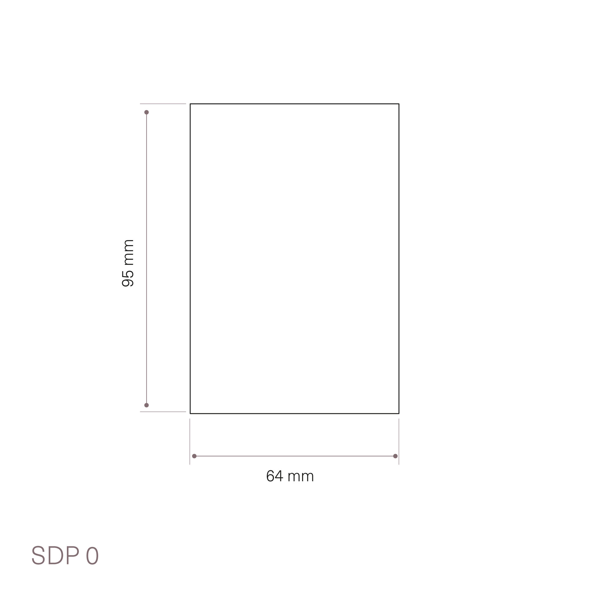 Dimensioni: 95 mm x 62 mm, h 17 mm.